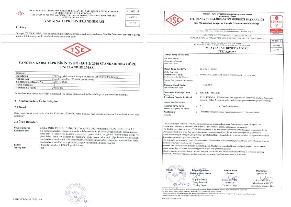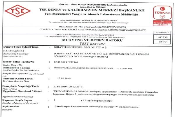 Raylı Sistem Üreticilerine Özel Yanmazlık Özellikli Kumaş Belgesi